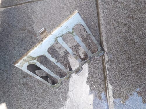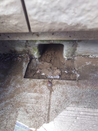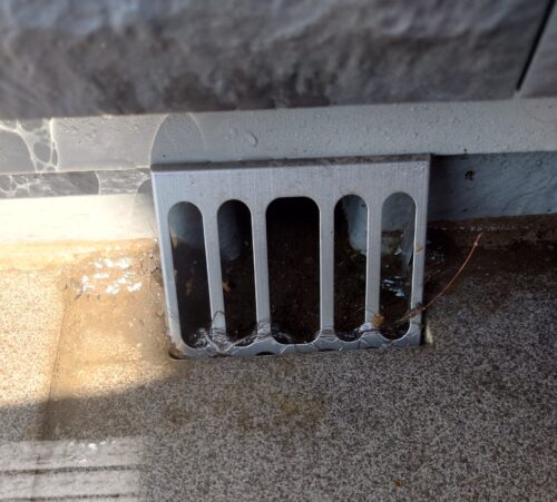 床面に溜まっていたゴミなどがより排水口に溜まって流れが悪くなっていました。