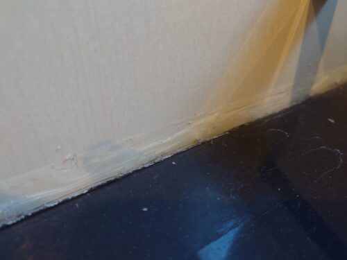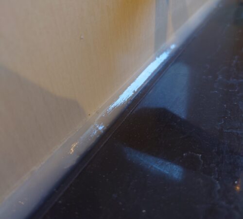 キレイに施工できているように見えますがシリコンコーキングのキワに厚みがあったので塗布しすぎたと思われますので、私は3回やりましたが2回で十分だったと感じています。