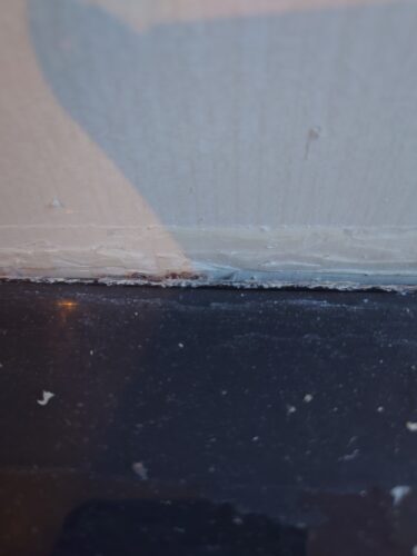 コーキングが剥がれるのは7年は早すぎるなと思い、よくよく見てみるとコーキングが角部を中心に見た時、片方に寄っていることが見られるので均等に塗られていないことがわかりました。