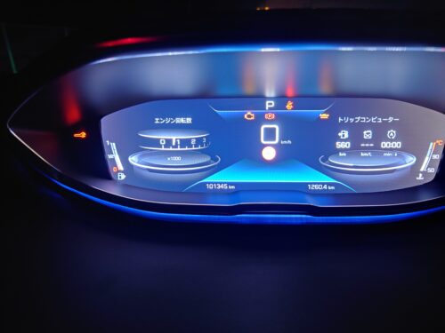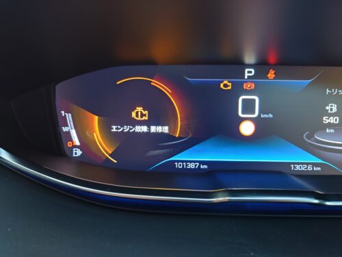 前回はエンジン掛け直しても警告灯が点灯したんですが、今回はエンジンマークだけ点灯しました。