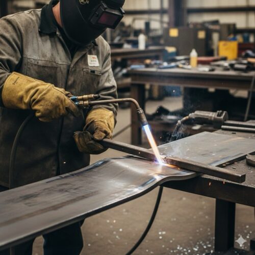 歪取りは薄板になればなるほど難易度が上がりますが、PL1〜4mmくらいはハンマーで叩いて直すことができます。